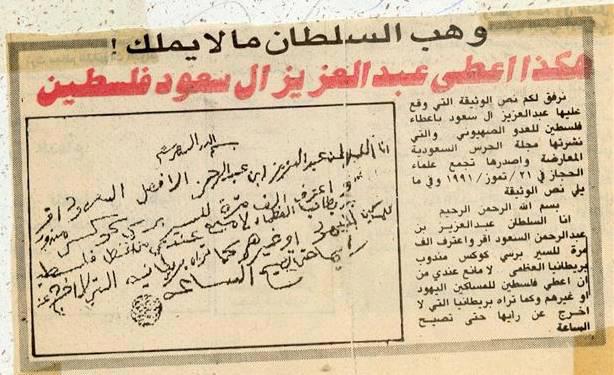 Questo è il documento con il quale la casa di Saud ha venduto la Palestina sionisti. Senza bisogno di commenti!